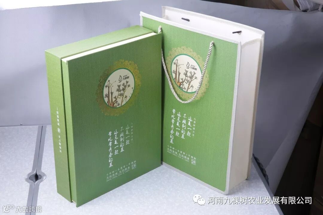 九棵树出品的香椿酱新颖别致的包装,高端大气的精品礼盒,绝对让你拿得出手。快上淘宝浏览一下吧!