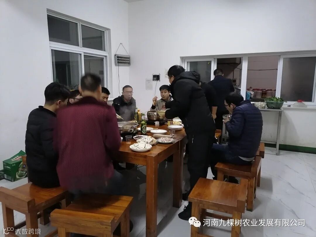 寒冷冬日的一顿火锅,温暖了每一位员工,大家吃着自己种的蔬菜,蘸着自己加工制作的调料,这样一顿火锅,应该会让人永远不会忘记。九棵树的员工一直以来就如同家人一般,团结一心,立志要把九棵树发扬光大。我相信有这样一支团队,九棵树一定会蒸蒸日上,再创佳绩!