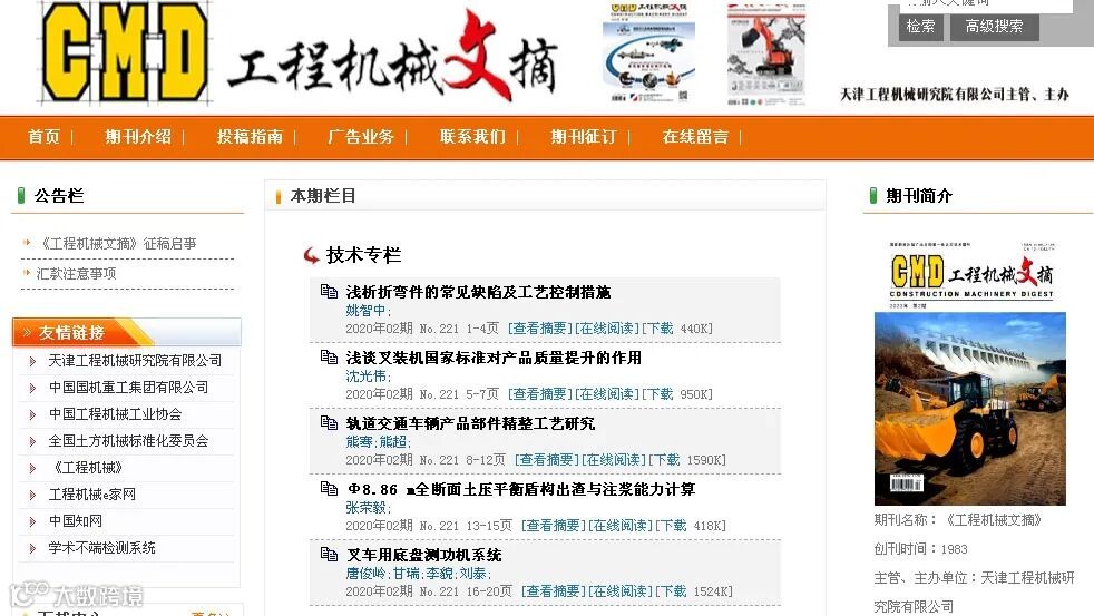 创刊于1983年的《工程机械文摘》是天工院的重要期刊资源,在《工程机械》的联合带动下,两本期刊已成为工程机械行业的学术期刊品牌。《工程机械》《工程机械文摘》未来将继续发挥期刊的媒体宣传优势,互补配合发展,携手助力提升天工院在工程机械行业内的科研影响力。