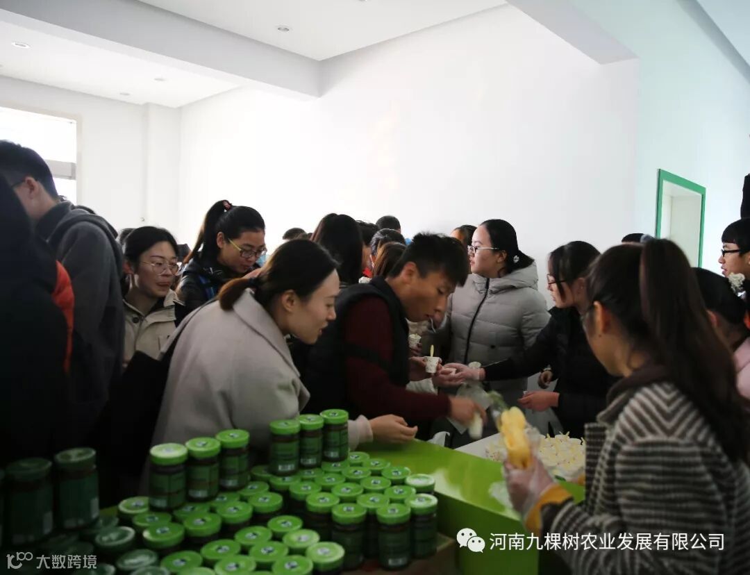 为欢迎远道而来的广大师生,同时加强互动,九棵树专门为大家准备了一些小礼品,只要参与我们的抽奖游戏,就有机会获得小礼品。一等奖和二等奖可以免费获得我们的香椿酱,获奖同学非常开心,纷纷前往我们的领奖台领取奖品,还有同学用领取的优惠券给父母购买香椿酱。