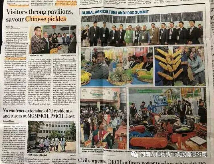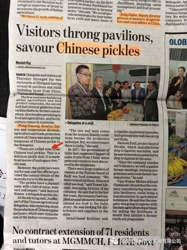 九棵树香椿酱参加过在印度恰尔肯德邦首府兰契举行的全球农业与食品峰会后,以其别致的包装和独特的口味成功登上了印度报刊。