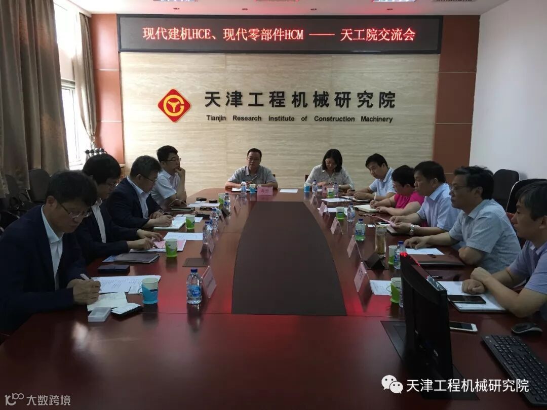 天津工程机械研究院有限公司6月18日,韩国现代建机公司(HCE)首席技术官金大舜先生一行4人到访天工院,与我院进行技术交流,尚海波董事长代表我院表示了热情欢迎。双方对各自公司的技术研发、产品情况进行了介绍,针对共同关注的工程机械排放标准、电传动和无人驾驶技术发展趋势以及智能制造等方面进行了深入交流,并参观了部分试验室。
