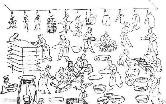 烹饪方法,主要是蒸、煮、烤、煎。那时的“煎”和今天不同,是不加油的,主要指干煎或加水烧到干,如果还剩下些残水,就变成“煮”了。