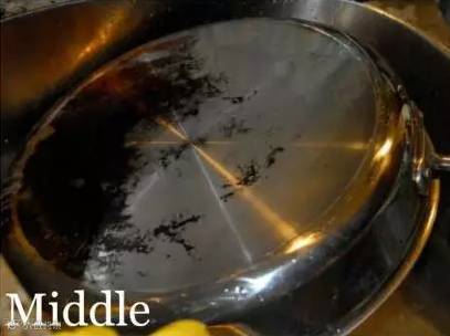 问题:长期使用的平底锅锅底布满黑色污渍,影响美观。