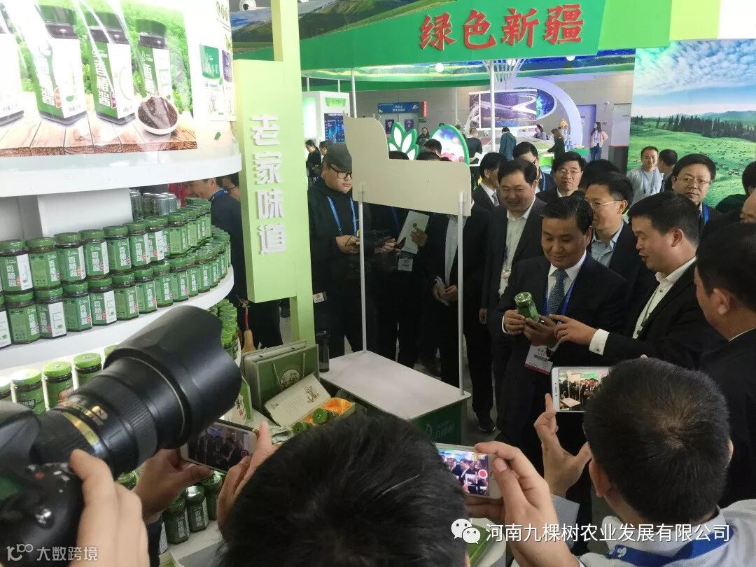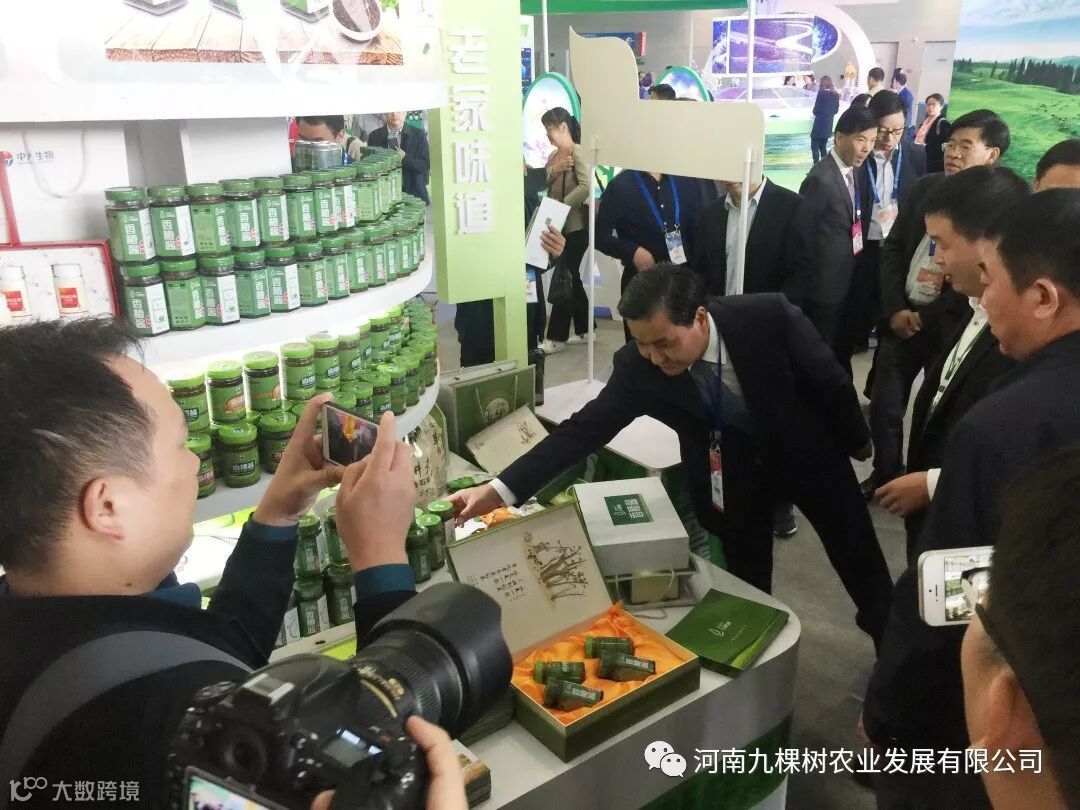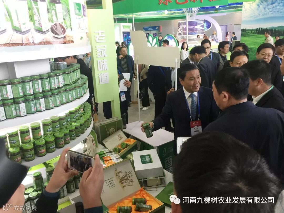 武省长一行参观了农产品交易会,走到九棵树展区时被九棵树产品独特清新的包装设计所吸引,停下来询问。