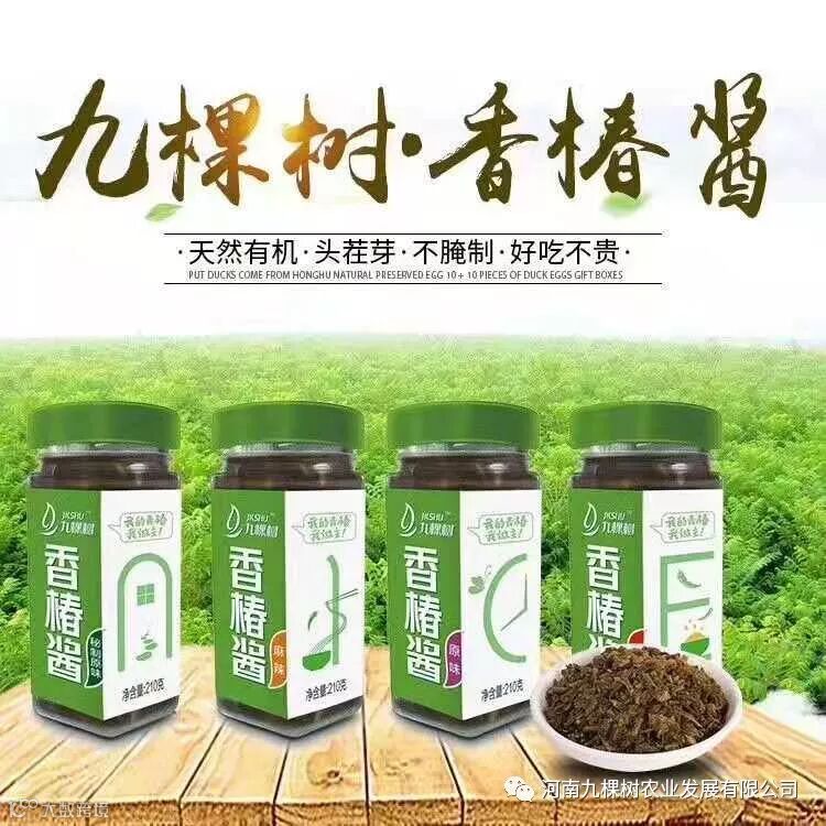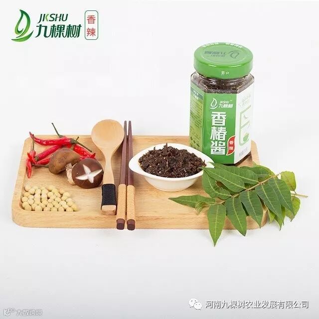 近年来,消费水平升级,在好吃的基础上,还追求健康营养,而我们的九棵树香椿酱,营养丰富,其原料香椿又被称为“黄金蔬菜”、“树上蔬菜”,富含钙、磷、钾、钠,以及丰富的维生素C、胡萝卜素、粗蛋白等多种营养成分,尤其是红油香椿,具有枝叶色红、芽苔粗壮、脆嫩多汁、香气浓郁等特点,口感一流。