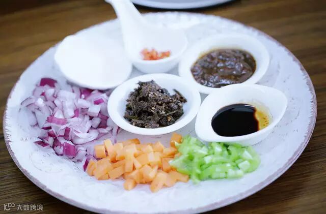 胡椒汁 3勺、香椿酱 2勺、老抽 1/2勺、盐 少量、香芹叶、奶酪粉少量、小米椒 1个