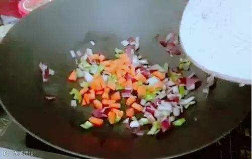 将锅烧热,添入一勺油,放入切碎的蔬菜。