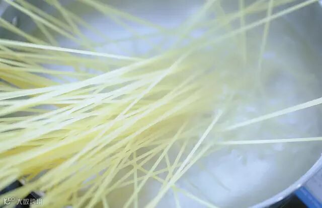 将汤锅中添入足量的水,烧开后放入意面,煮10-15分钟出锅。