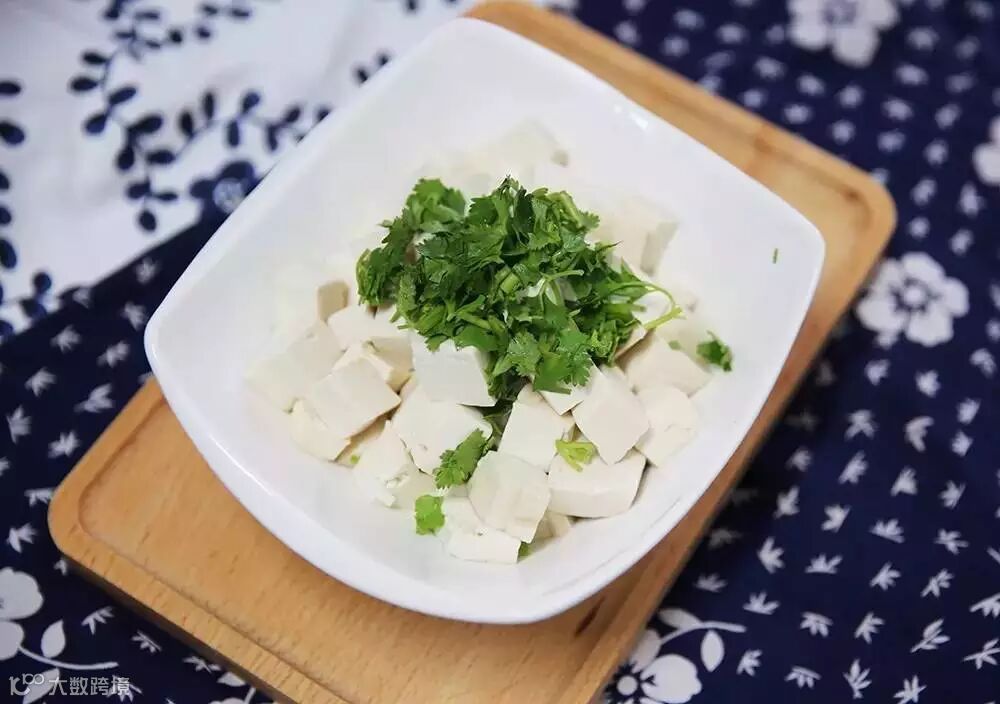 小贴士:豆腐最好开水焯烫一下,晾凉后再拌制。