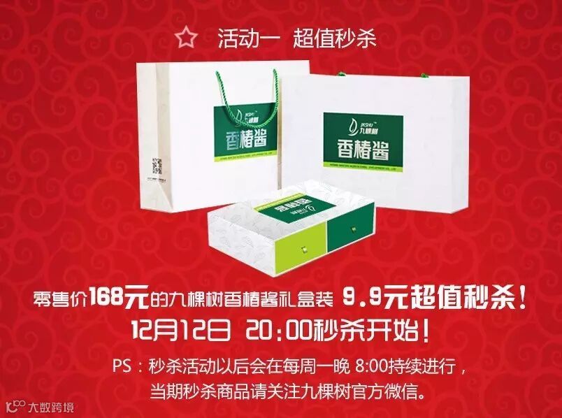 有亲曾在后台给小编留言,关注太晚错过了双十一的砍价活动,好,后,悔。亲,哪个时段关注九棵树都不晚,错过双十一,怎能放过双十二?!九棵树双十二不来虚的,大奖很给力,钱包很HAPPY~