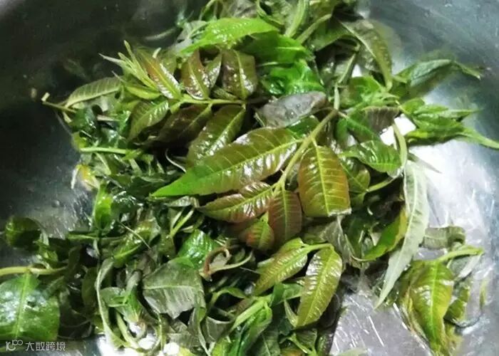 将香椿芽老的部分摘去,用淡盐水清洗两遍。