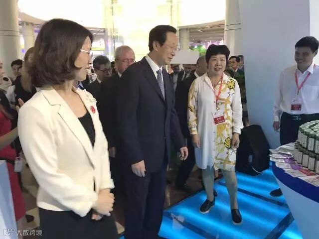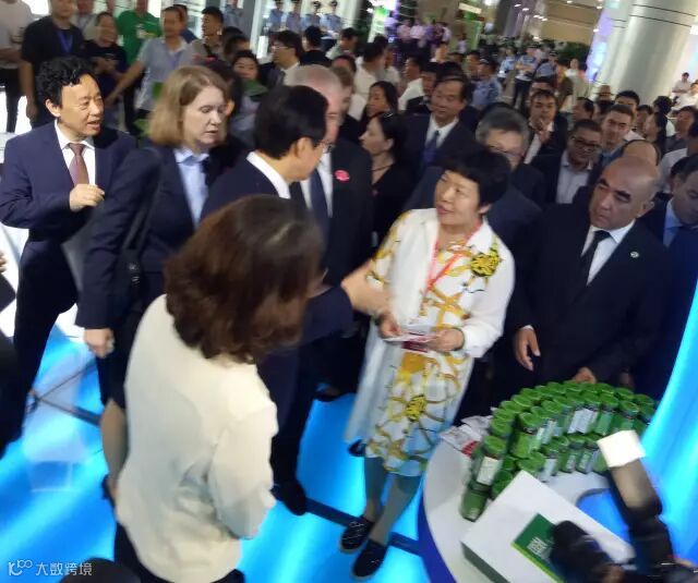 有一群人由远及近,最后停在香椿酱前,原来是韩长赋部长一行,同行的还有河南省省长陈润儿,漯河市副市长吕娜陪同参观。韩部长一边观察产品,一边饶有兴致地听漯河市农业局副局长潘红霞介绍香椿酱和香椿小菜。