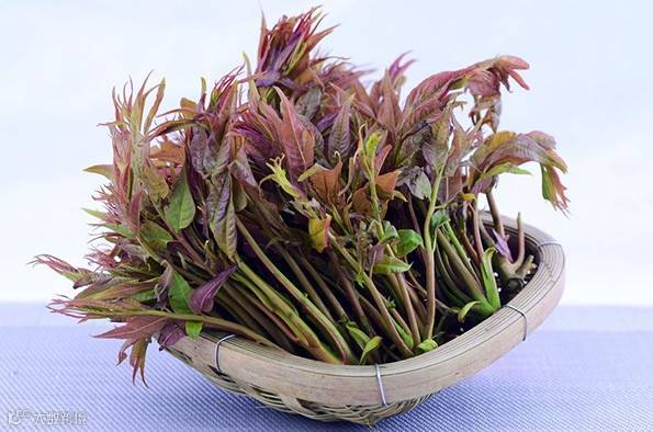树冠开张,多年生树皮黑褐色,呈条状纵裂和片状脱落。萌芽能力强,幼树生长旺盛,叶芽向外开张。嫩芽长6-10厘米,紫褐色,基部叶绿褐色,光泽油亮。每芽有7-8片叶,最大叶长8-20厘米。叶间距小,叶柄较粗,长约为叶片的1/3,正面淡紫色,背面绿色。3月底发芽,芽初发时紫红色,以后转为墨绿色,尖端紫褐色。香味特浓,质脆,食之无渣,风味好,无苦涩味。