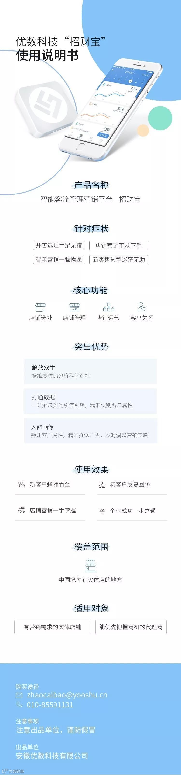 招财宝——智能客流管理营销平台,通过数据收集设备招财喵,实时采集线下数据,与线上数据进行打通,为实体店铺提供一站式运营管理服务。
