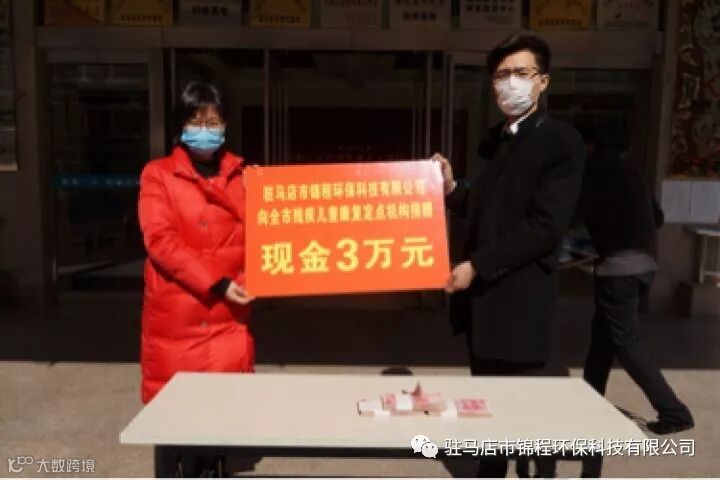 疫情防控期间,全市残疾儿童康复工作牵动着驻马店市锦程环保科技有限公司经理贺圣杰的心。2月17日,他送去了1000个口罩,并捐出3万元现金,用于全市0~6岁残疾儿童康复救助定点机构全面开展线上疫情防控指导和康复教育指导服务工作。