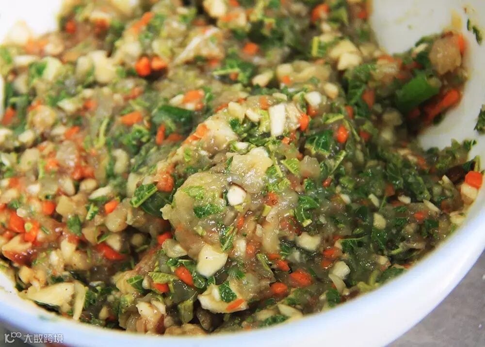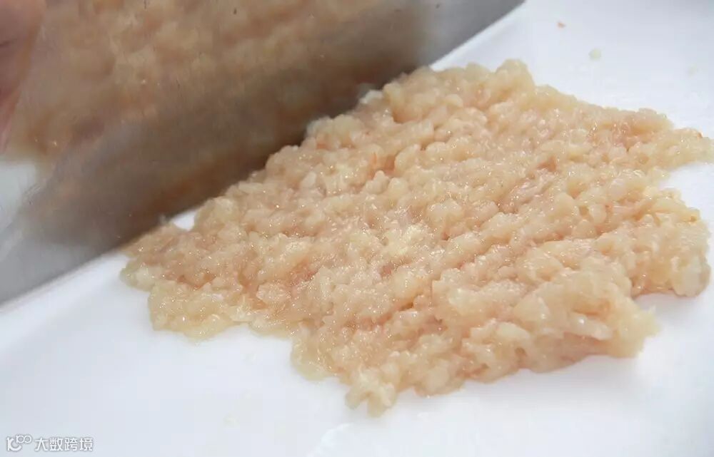 鸡胸肉用少量盐腌制十分钟,切成泥状