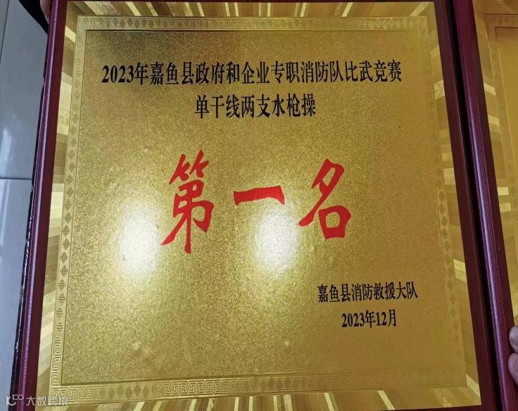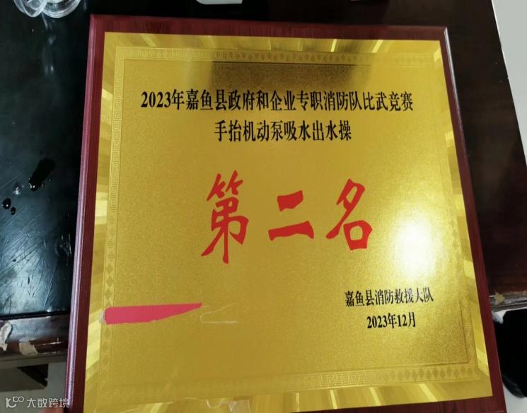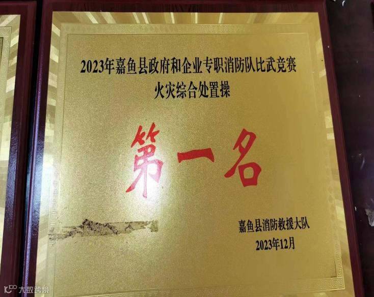 2023年12月5日,在嘉鱼县消防救援支队举办的“全县专职消防救援队比武竞赛”中,公司选派的王克淋、左志勇、徐炎学、钟皓、孙万兵、游安青、张志强、魏治洲八名专职消防员,经过紧张激烈的角逐,队员们技艺娴熟、配合默契,分别取得“2023年嘉鱼县政府和企业专职消防队比武竞赛团体第一名”、“单干线两支水枪操第一名”、“火灾综合处置操第一名”、“手抬机动泵吸水出水操第二名”的优异成绩。