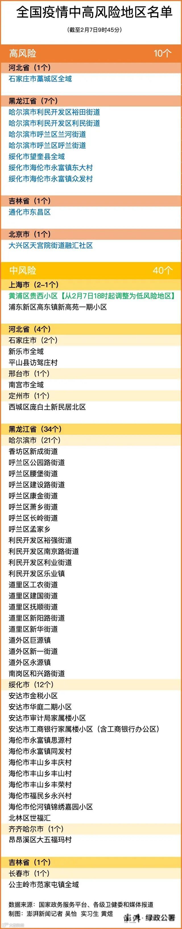 截至2月7日9时45分,全国疫情风险地区名单如下:
