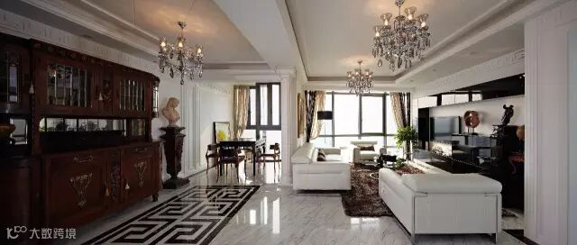 古典欧式,一种追求华丽、高雅的古典。以华丽的装饰、浓烈的色彩、精美的造型达到雍容华贵的装饰效果。室内常采用壁炉造型、大型灯池,并以华丽的枝形吊灯营造气氛。门窗上半部多做成圆弧形,并用带有花纹的石膏线勾边。