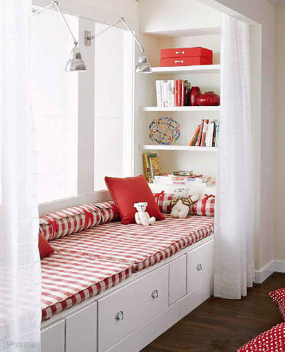 卧室的飘窗可以这样装,午后晒着太阳,听着音乐,品着茶,看看书,看累了小歇一下,好不惬意。。。