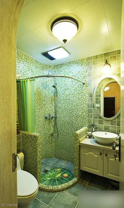 卫生间一定要用暖色调噢,这个灯和墙饰特别吧。