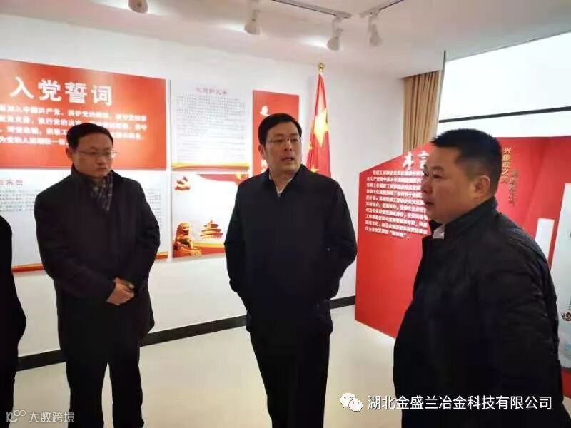 在公司党建文化展示厅,丁书记察看公司党支部阵地建设,了解支部架构设置,党员活动开展、党建促脱贫攻坚、支部作用发挥、企业文化建设等情况。他指出,要坚持高标准、严要求,建设好党建阵地,让党旗在企业飘扬,党员在岗位闪光,发挥中流砥柱作用,凝聚发展合力。