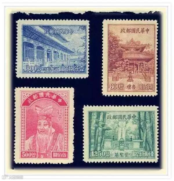 中国第一套“教师节”邮票,即发行于1947年8月27日,这套邮票共4枚,图案内容为孔子像、孔子讲学的杏坛、孔子墓、孔府中大成殿。