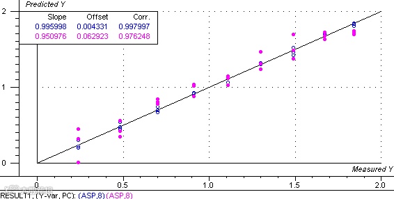 这说明在0.24%-1.84%含量范围内所建立的模型是成功的,可以对该范围内的样品进行有效的预测。