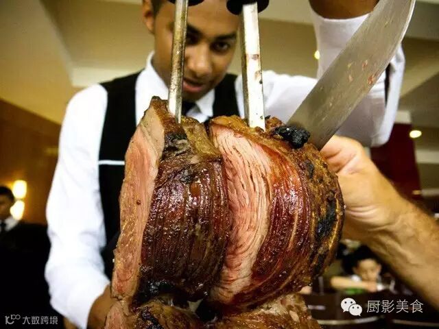 烤牛肉不加调料,只在牛肉表面撒点食盐,表层油脂渗出,外面焦黄,里面鲜嫩,有一种特有的香味。烤牛肉是巴西上层宴客的一道国菜,也是民间最受欢迎的一道菜。