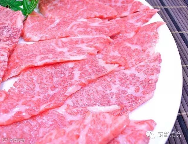 神户牛,本名但马牛,产自于兵库县北部(古时叫但马国),但马牛从不吃鲜草,只吃混合了大豆玉米麦子的干牧草,因此,短小精悍,肉质鲜嫩,含脂较低。因肉品上乘,通过神户肉流通推介协会注册,其中在夹脂牛肉含量霜降数值BMS达到6级标准,脂肪色泽和质量达到4或5级,才允许称之为“神户牛”。
