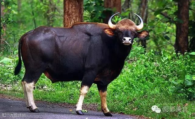 印度野牛也被称为野黄牛、亚洲野牛等,它是世界上最大的牛,体型非常巨大,外观上最明显的特征是四肢的下半截呈白色,好像穿着白色的长筒袜,因此有个外号叫“白袜子”。