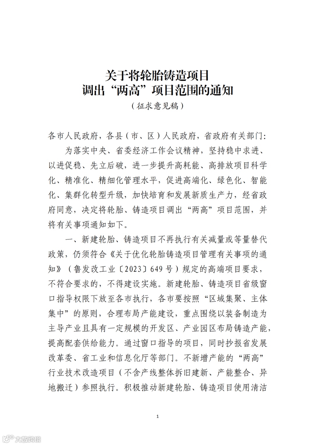 关于将轮胎铸造调出两高的通知(征求意见稿).docx