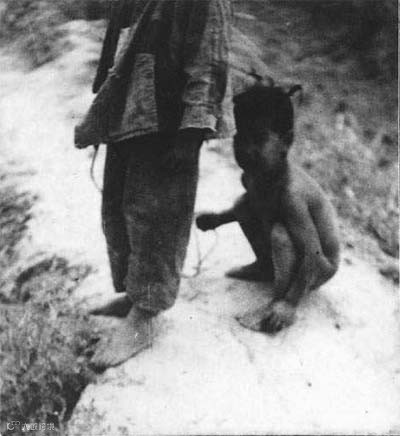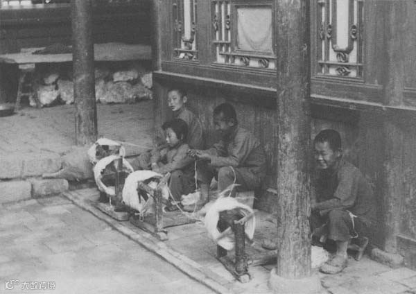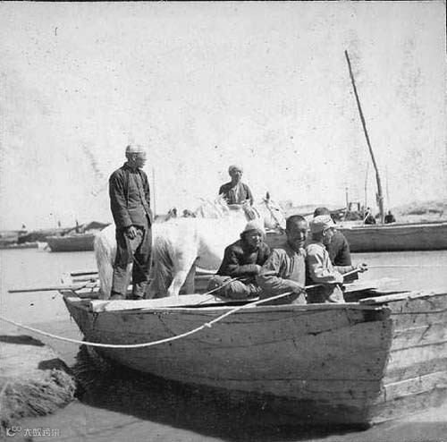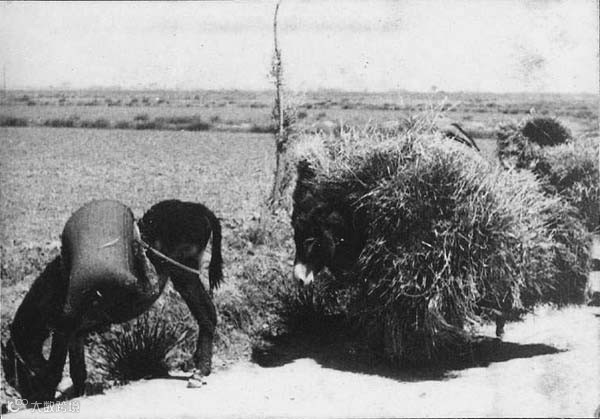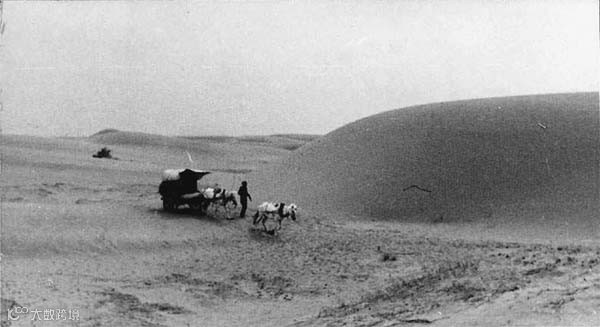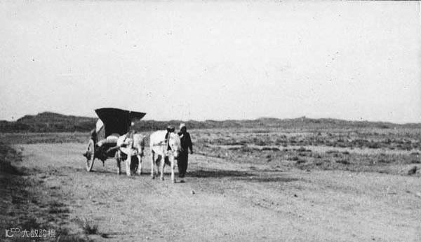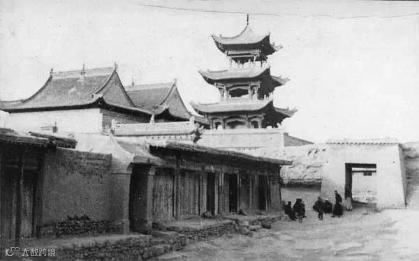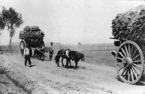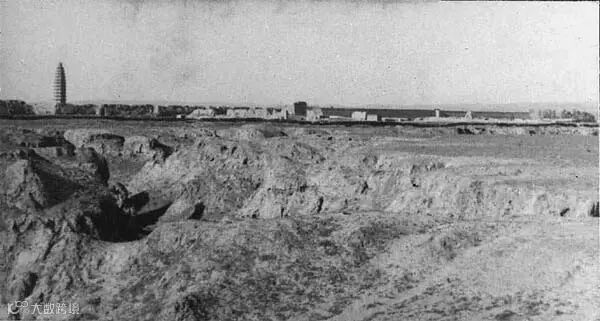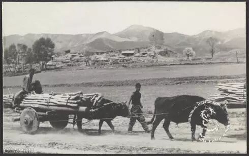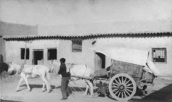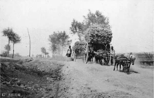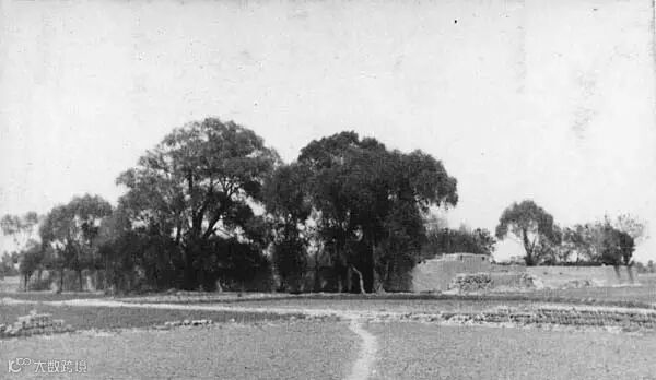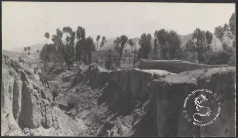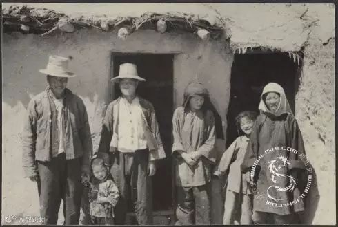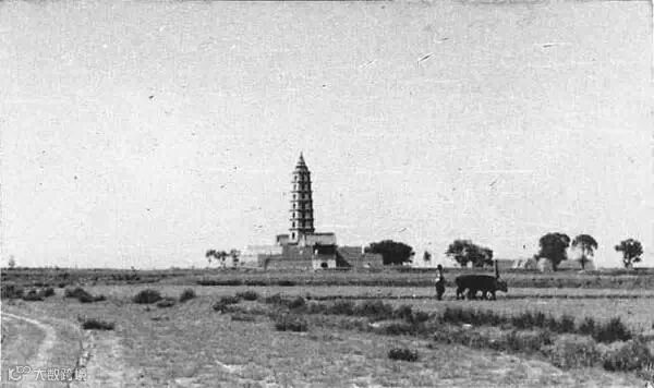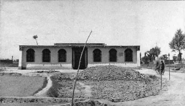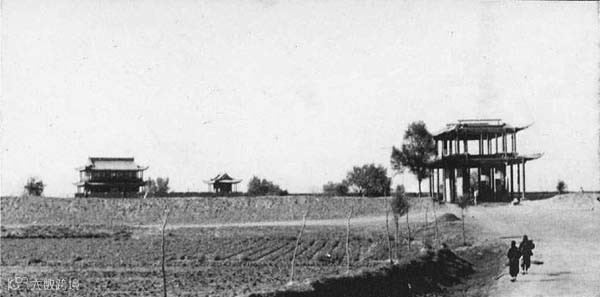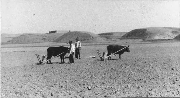 省城至平罗的路上,田间农夫,背景远处是一个堡垒。