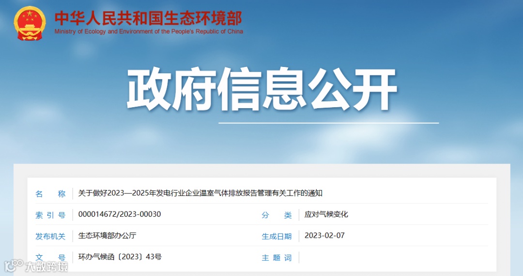 关于做好2023—2025年发电行业企业温室气体排放报告管理有关工作的通知