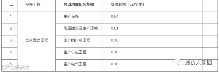 3、各种建筑类型的室外工程以项目总占地面积为计费基数。