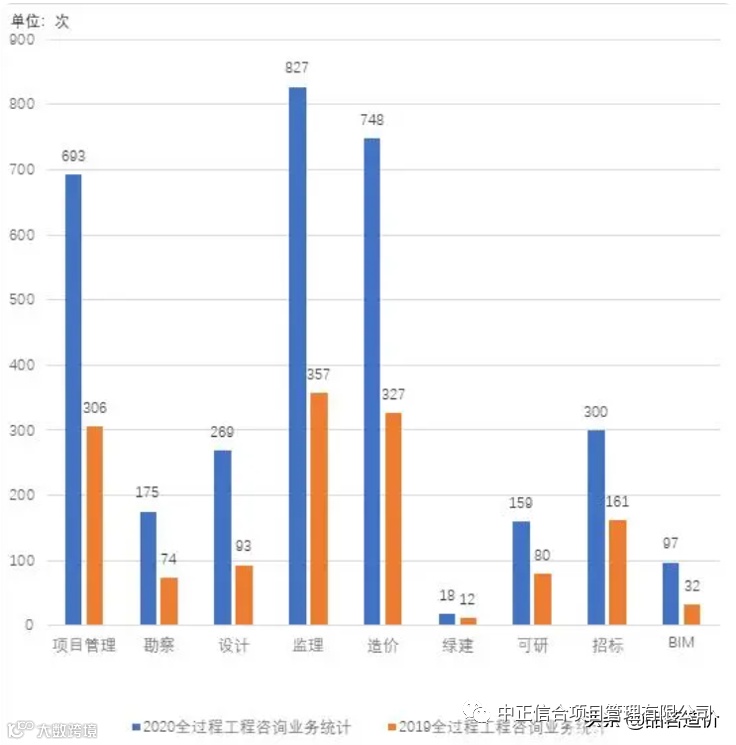 四是从项目业主委托工程监理和造价咨询业务数量高于项目管理数量可以判断出,部分全咨招标项目未委托全过程项目管理,而只采用“监理+造价咨询”组合或与其他专项咨询业务相组合,项目管理采用“业主自管”模式;据悉,江苏和江西等省采用此种模式多一些;