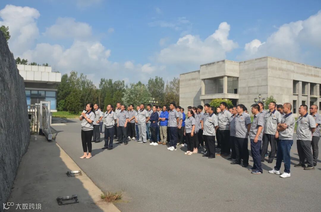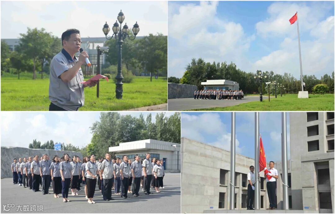 8点45分,伴随着雄壮激昂、催人奋进的国歌旋律,鲜艳的五星红旗冉冉升起,迎风飘扬。职工整齐列队,庄严肃立,高声同唱国歌。