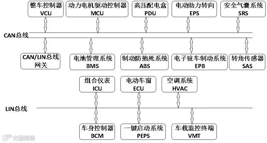 汽车上的这些控制器通过CAN网络来通信。CAN,全称为“Controller Area Network”,即控制器局域网,是国际上应用最广泛的现场总线之一。最初,CAN被设计作为汽车环境中的微控制器通讯,在车载各电子控制装置ECU之间交换信息,形成汽车电子控制网络。比如:发动机管理系统、变速箱控制器、仪表装备、电子主干系统中,均嵌入CAN控制装置。