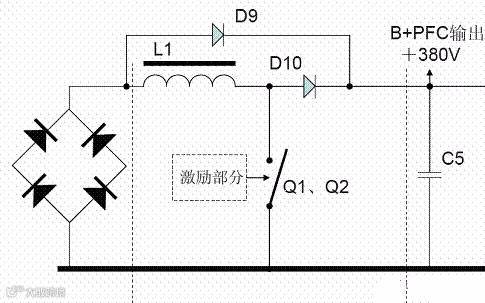 图3-1所示是三星V2屏开关电源,PFC电源部分电原理图,图3-2所示是其等效电路框图。