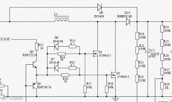 初步的了解了以上的关于MOS管的一些知识后,一般的就可以简单的分析,采用MOS管开关电源的电路了。