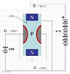 图示左右是对称的,难免会有人问怎么区分源极和漏极呢?其实原理上,源极和漏极确实是对称的,是不区分的。但在实际应用中,厂家一般在源极和漏极之间连接一个二极管,起保护作用,正是这个二极管决定了源极和漏极,这样,封装也就固定了,便于实用。我的老师年轻时用过不带二极管的mos管。非常容易被静电击穿,平时要放在铁质罐子里,它的源极和漏极就是随便接。