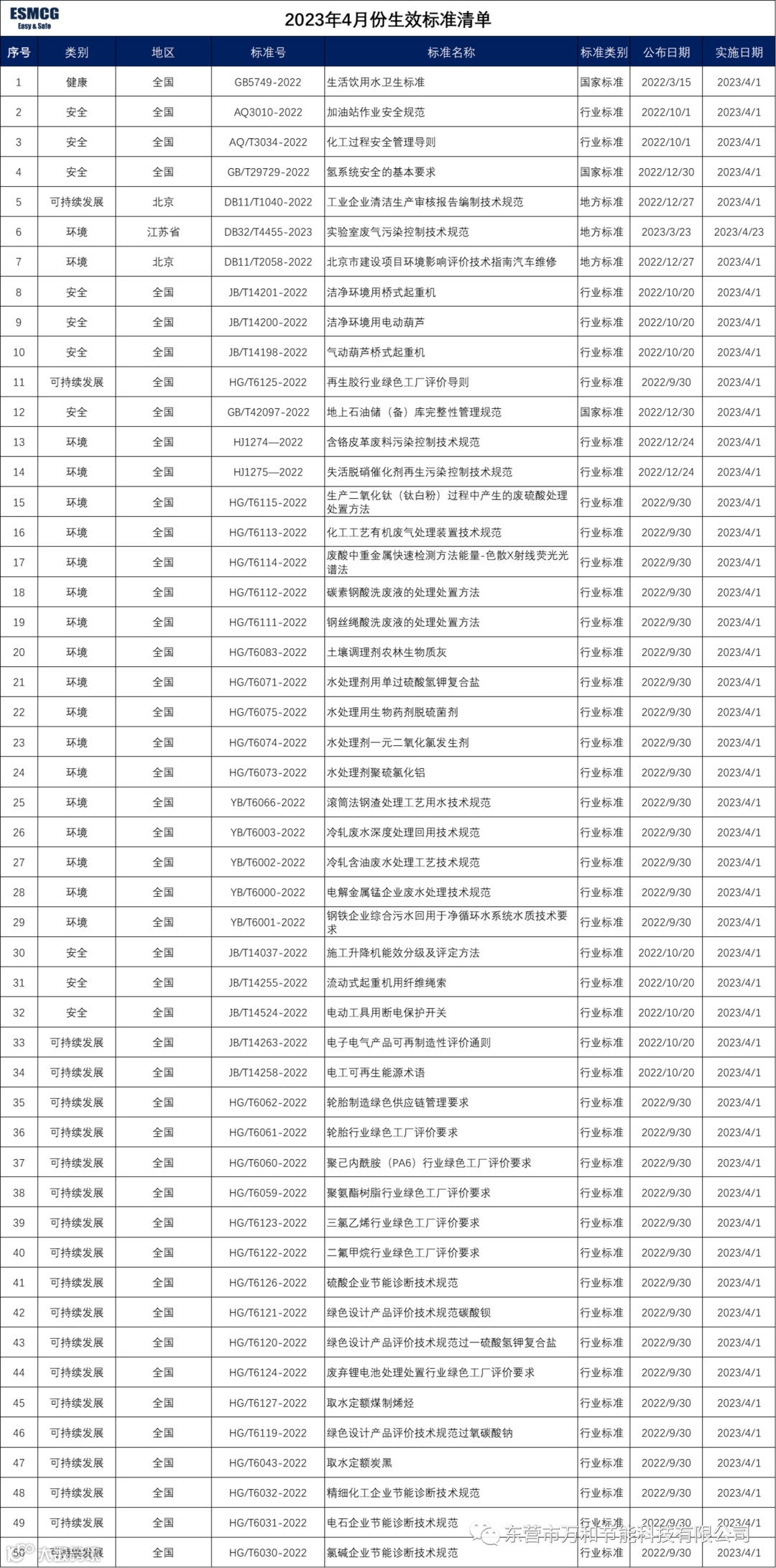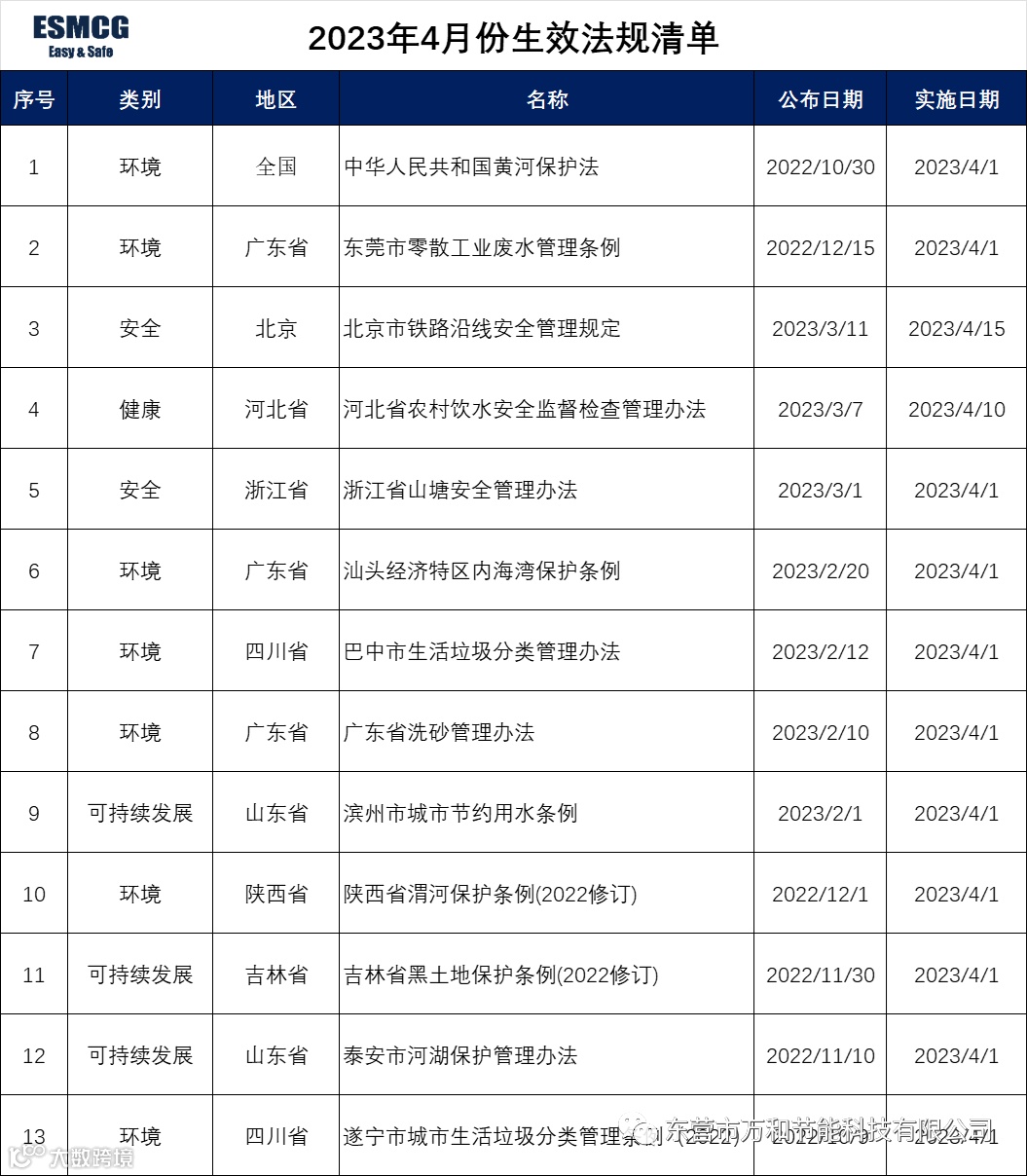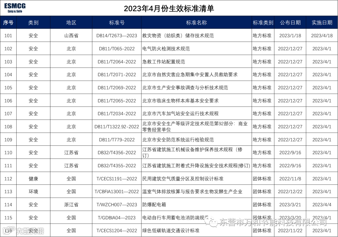 2023年4月生效法规标准清单