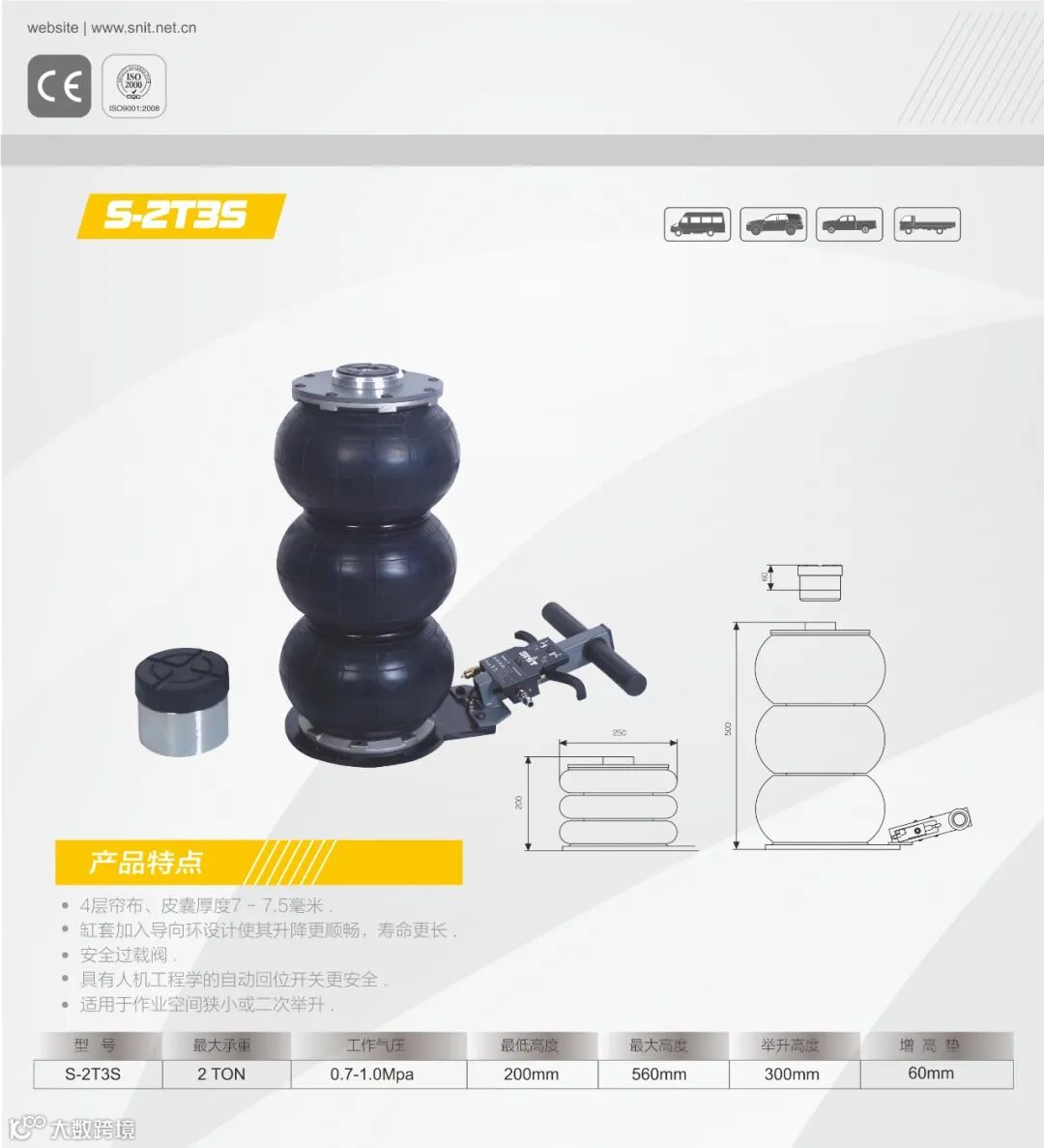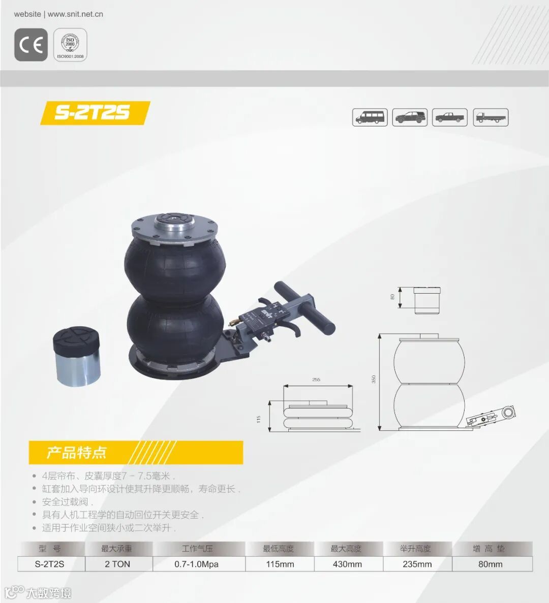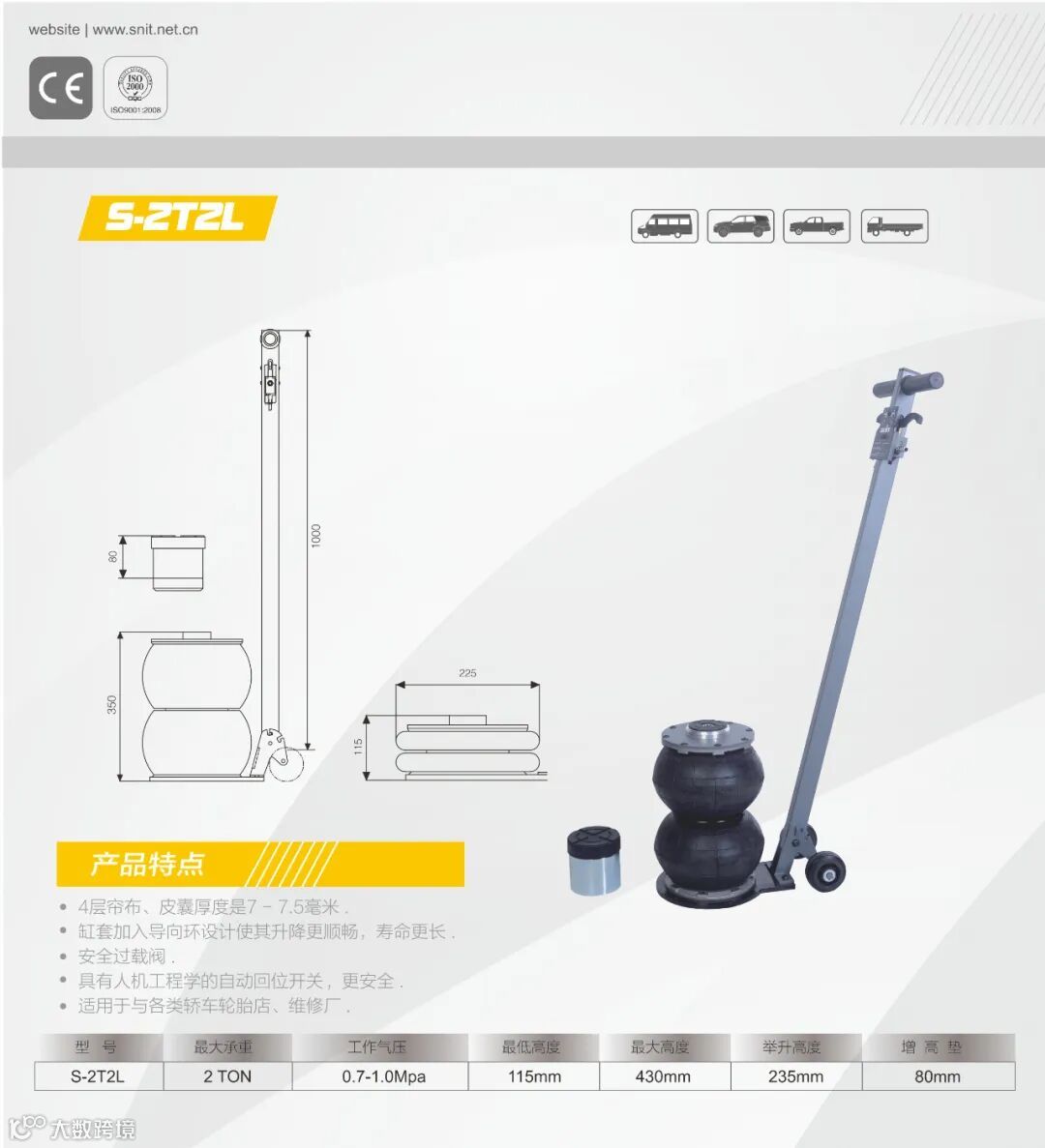 导读:斯耐特轿车气囊顶系列,专门为轿车轮胎拆换,四轮定位二次举升而开发的轻量级千斤顶。