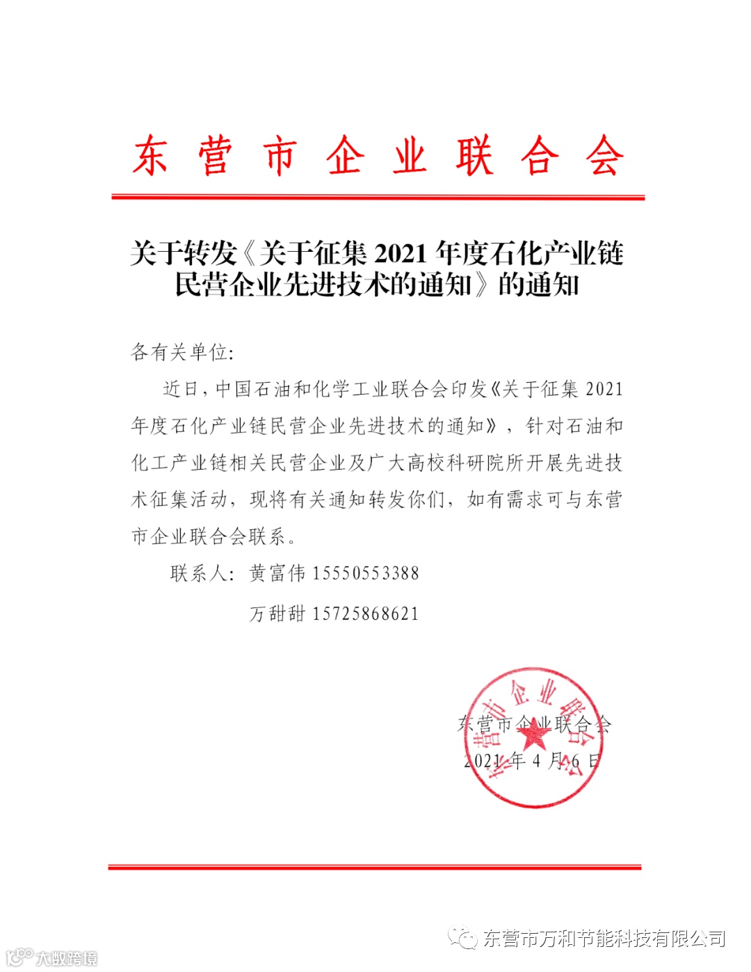关于转发《关于征集2021年度石化产业链民营企业先进技术的通知》的通知