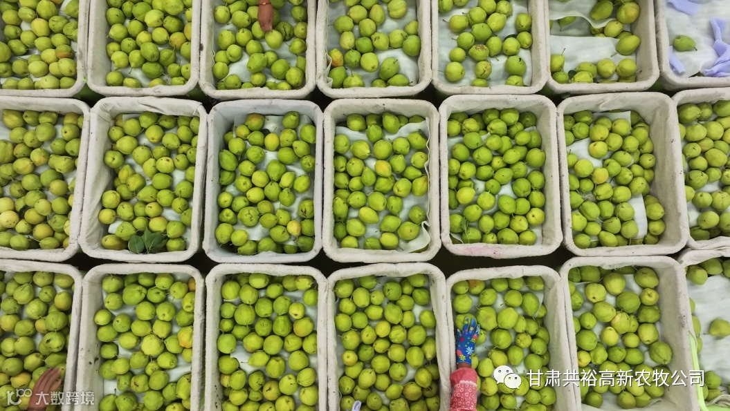 2023年9月20日,甘肃共裕高新农牧科技开发有限公司3000亩早酥梨第二批果品开始收获,预计总量在200吨左右,通过人工进行采摘、分级、装箱、打包、拉运和销售,呈现出一派丰收忙碌的喜人景象。