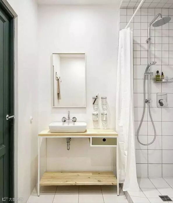 有些业主可能觉得深色比较耐脏,其实不然,暗卫一定要使用明亮的颜色,特别是墙砖,最好选用白色,这样可从视觉上直接改善了光线不足的缺点。