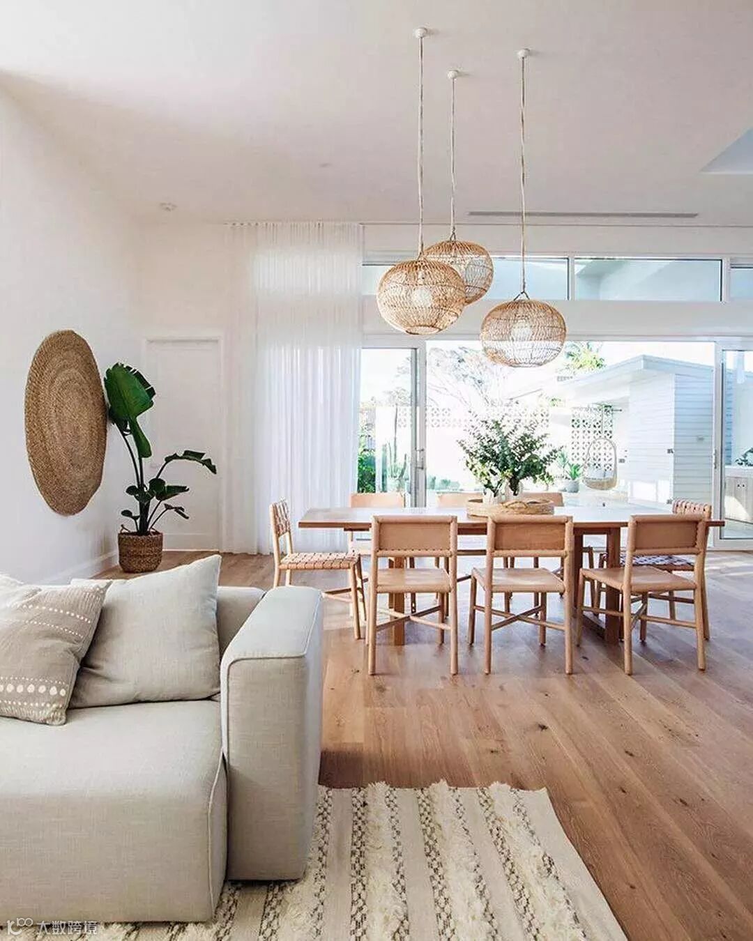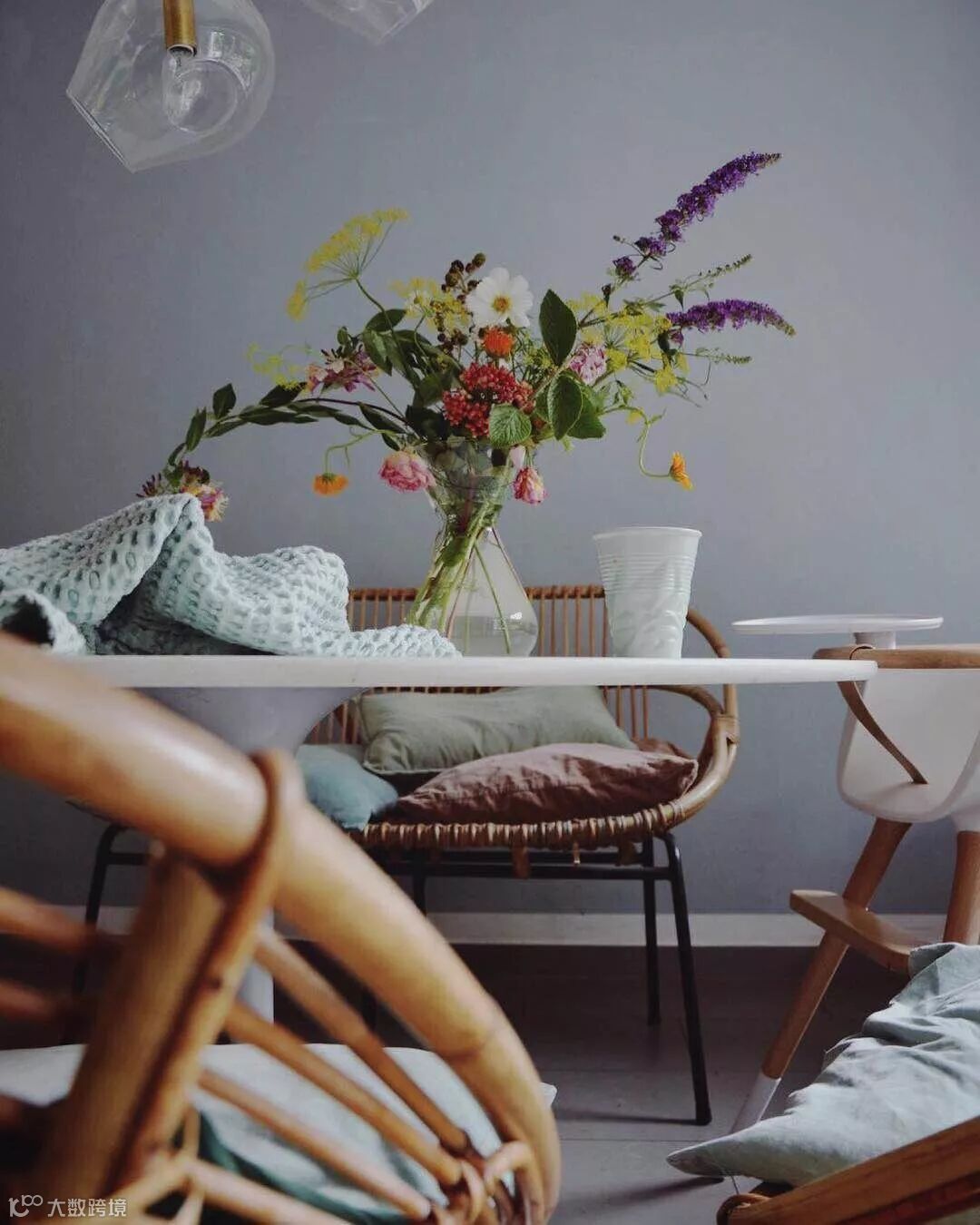 日式与中式风格里,大量的原木、藤编的存在,天然具备秋天属性。