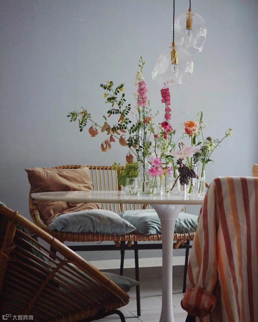 餐桌的花,绚丽而烂漫,充满勃勃生机。