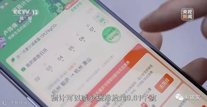 货车司机卢家苇:像我今天这趟跑完预计可以减少碳排放量9.61千克,达到目标可以领取优惠券,来抵扣我在平台的服务费。